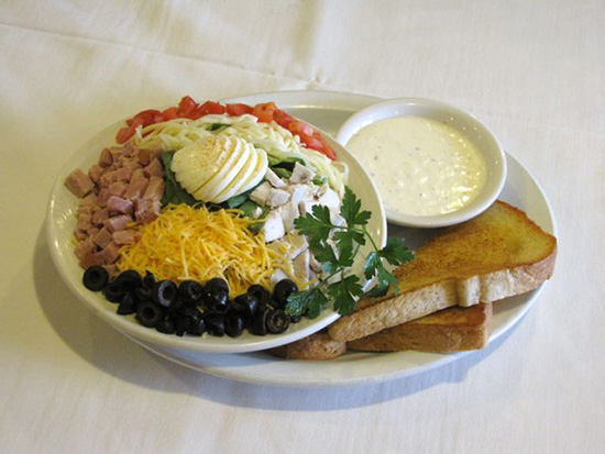 Chef Salad ~ Ham, turkey, cheddar, Swiss cheese & a boiled egg $15.99